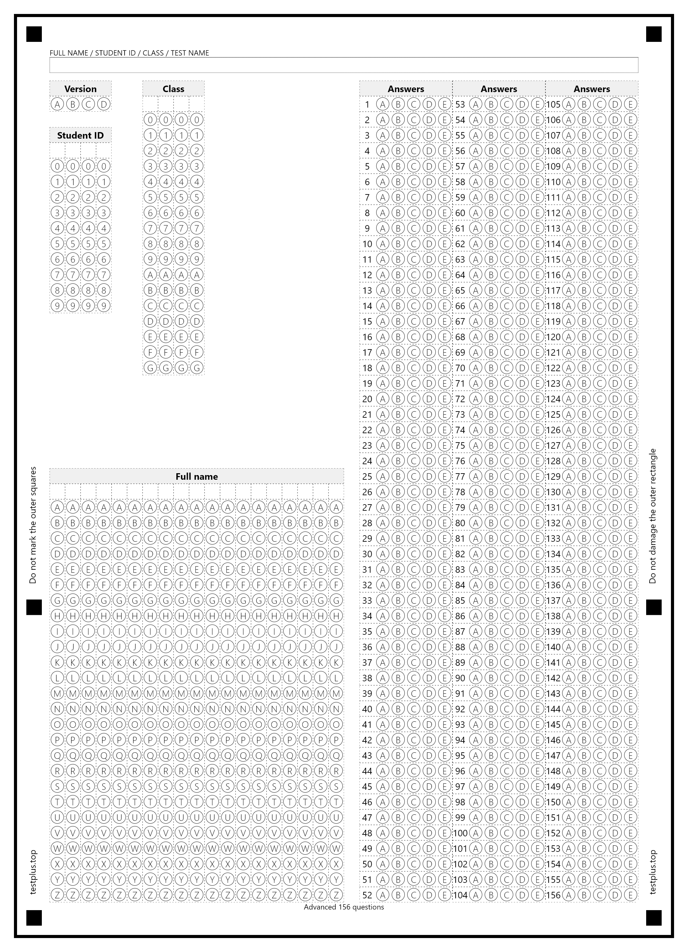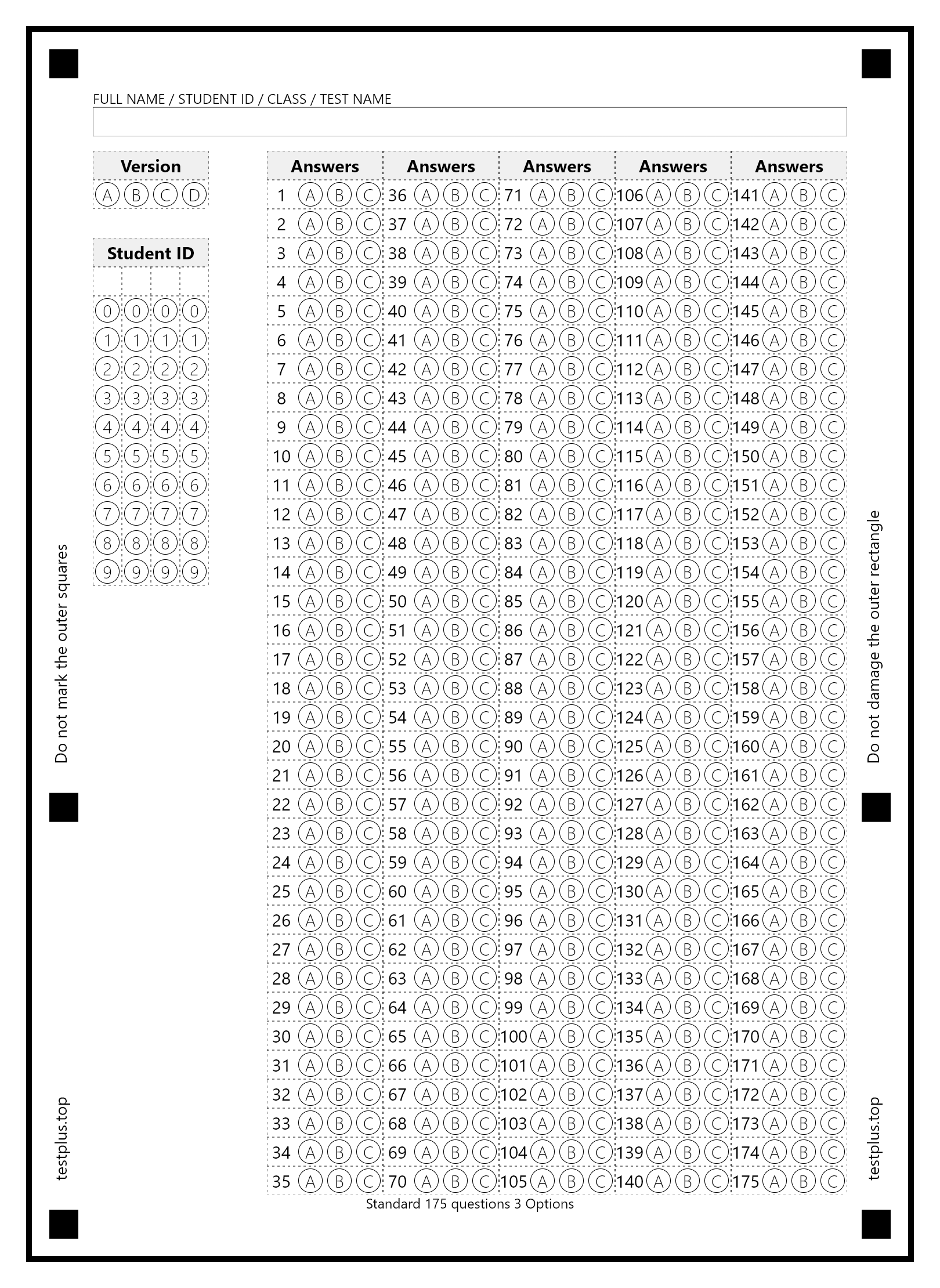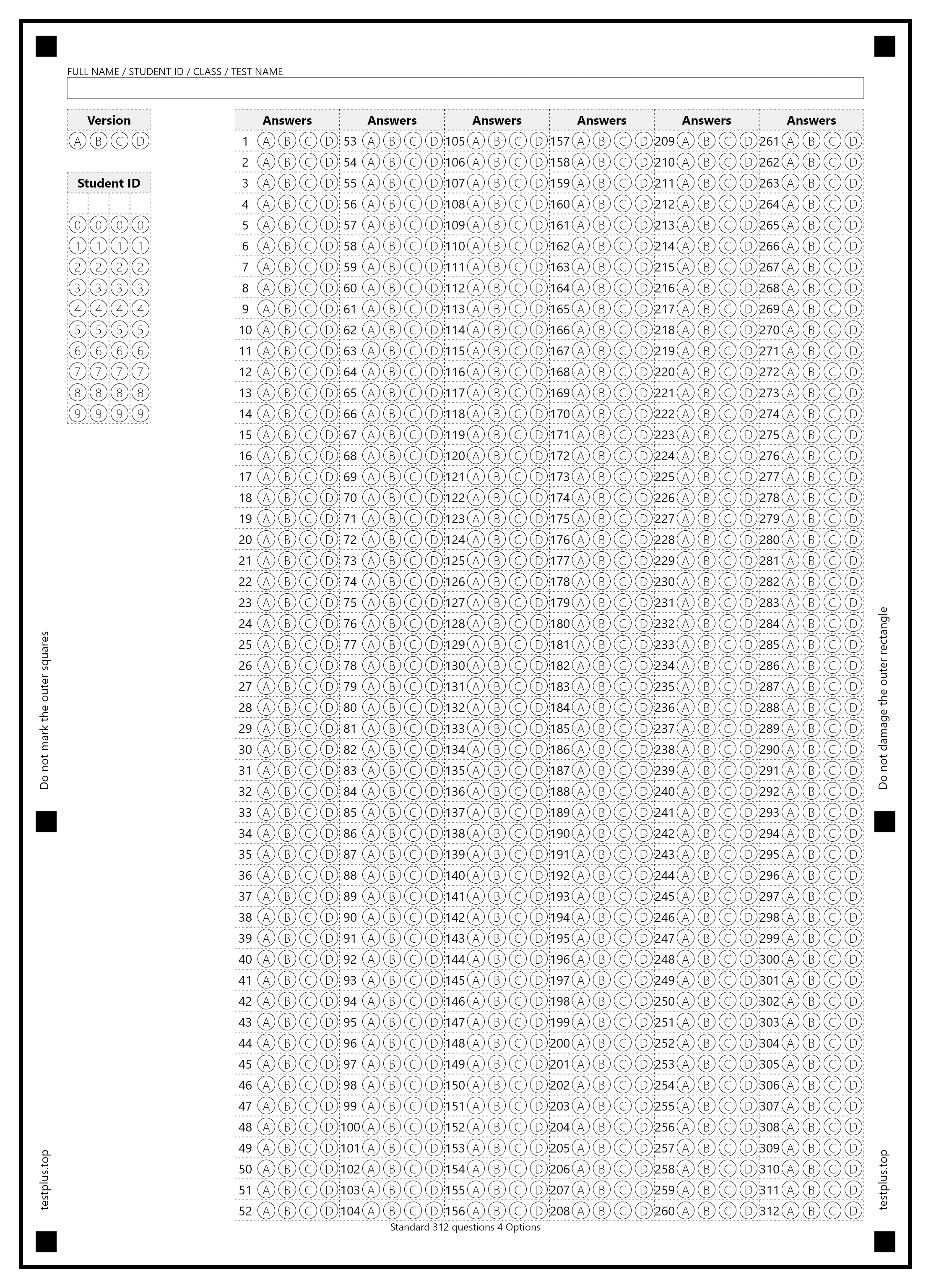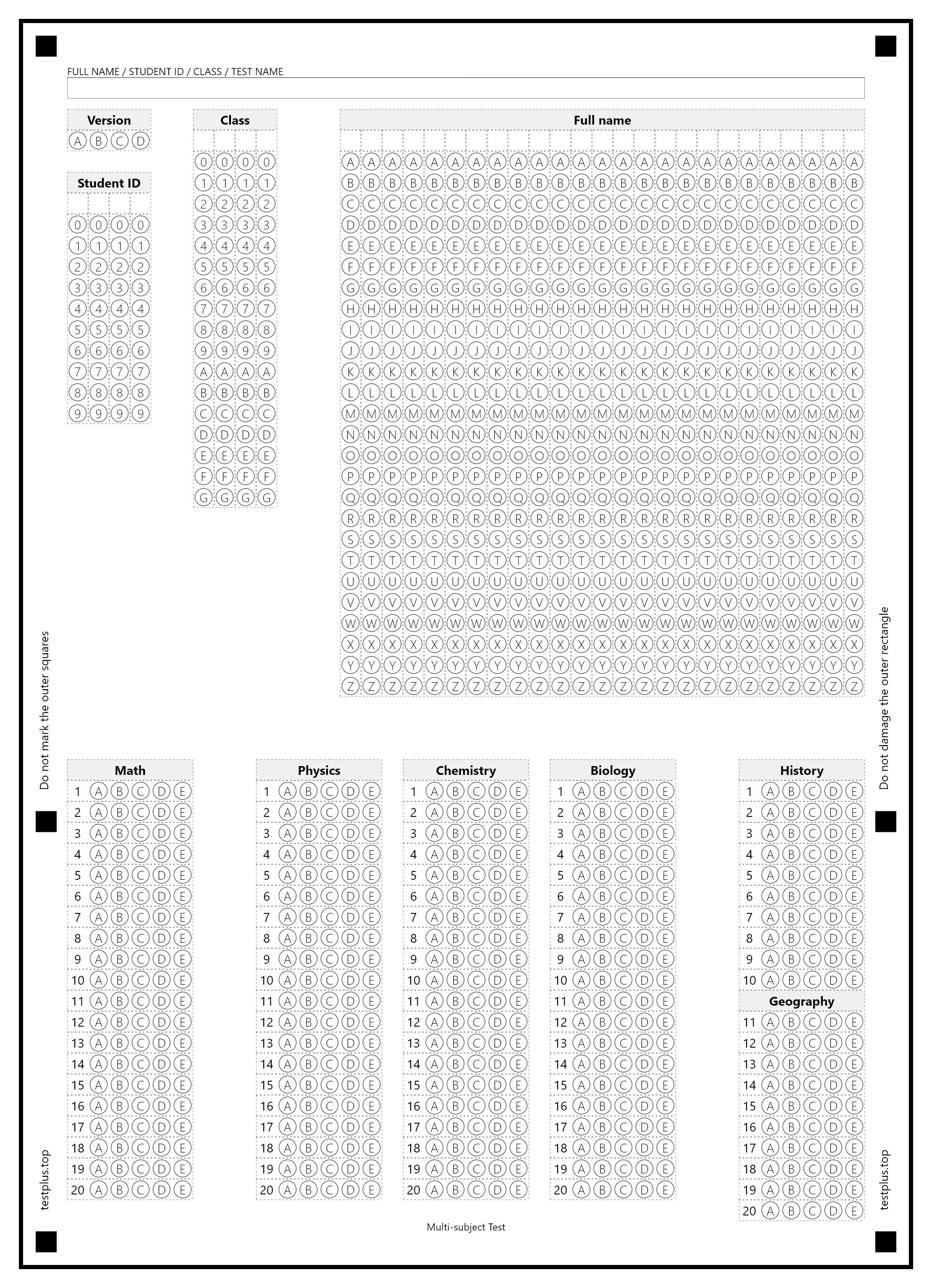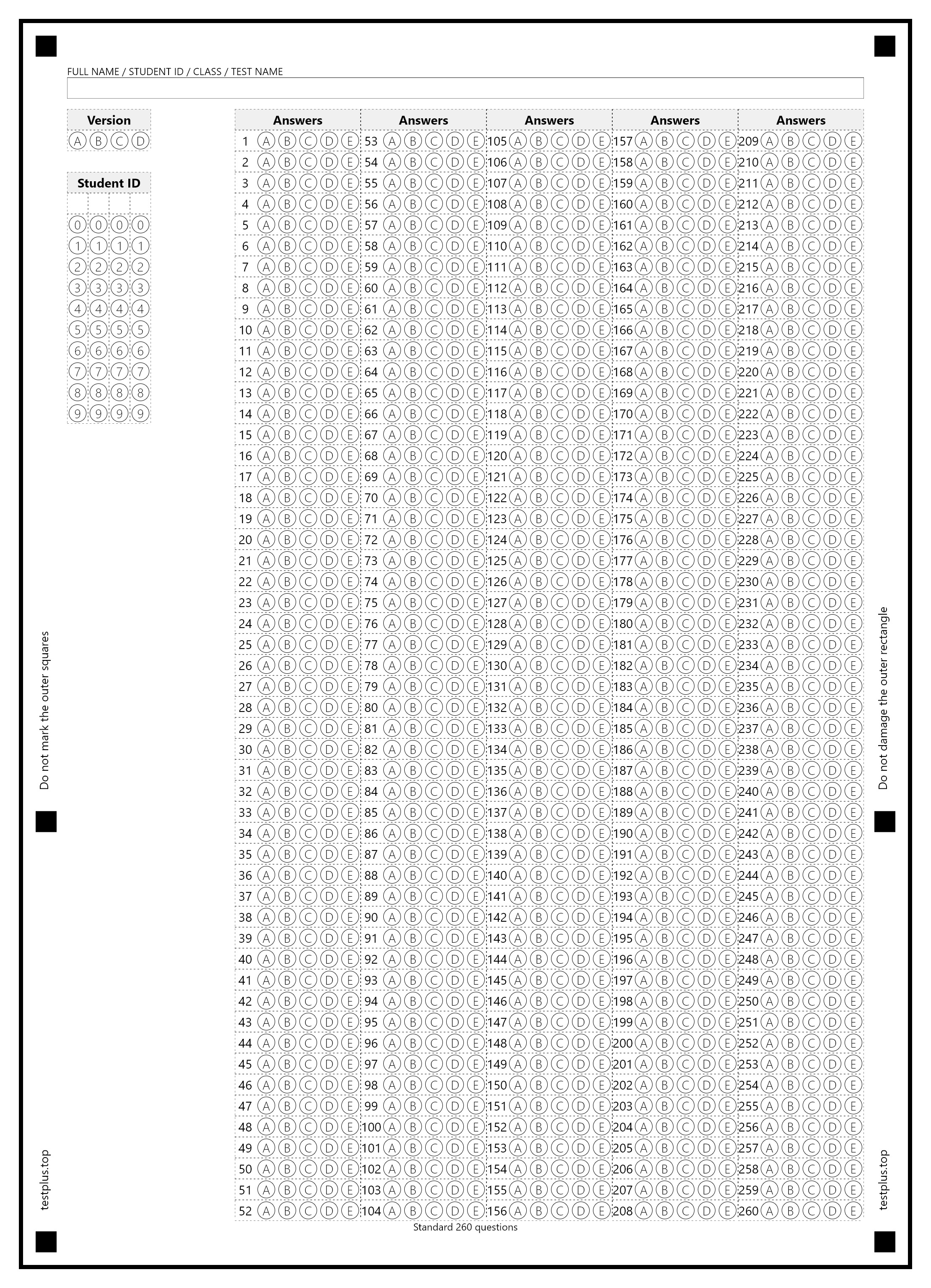 5-option answer sheets