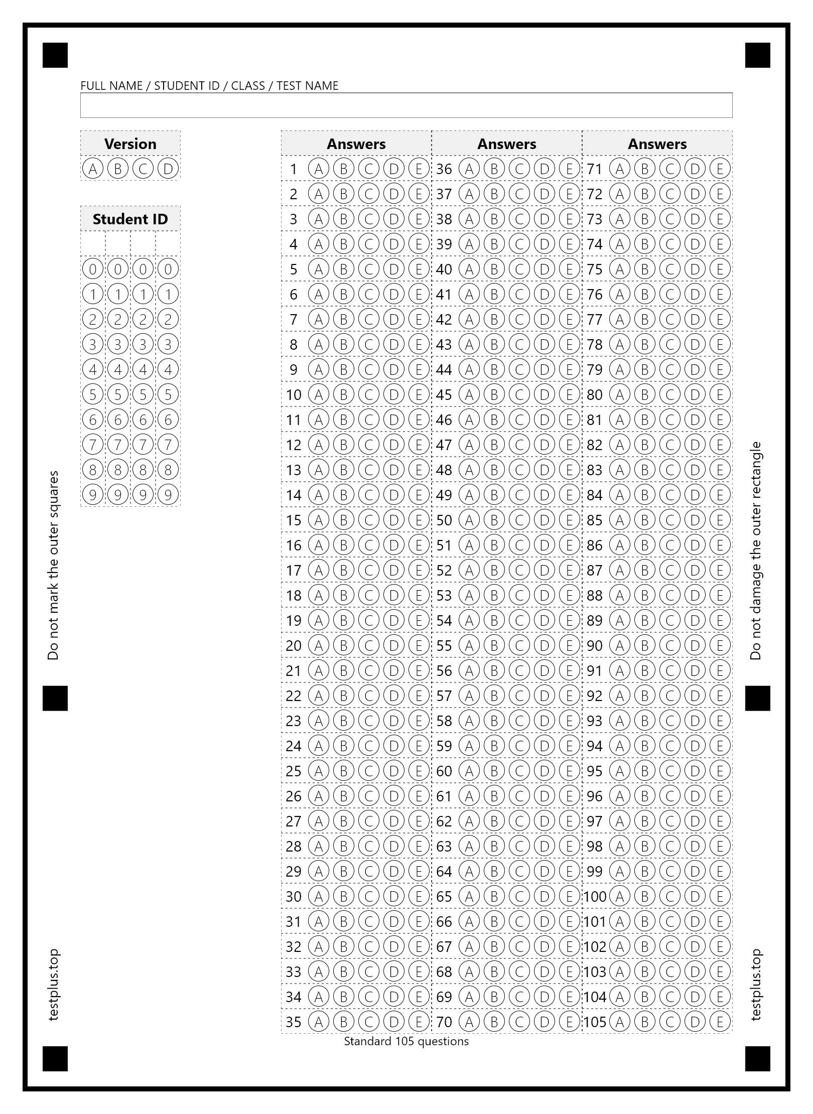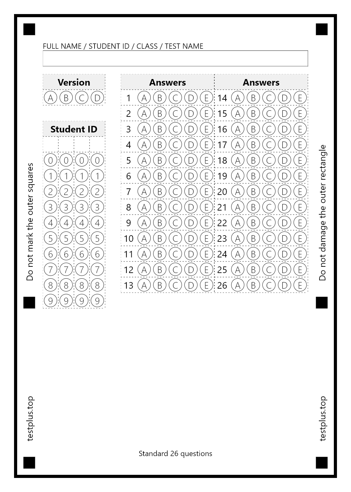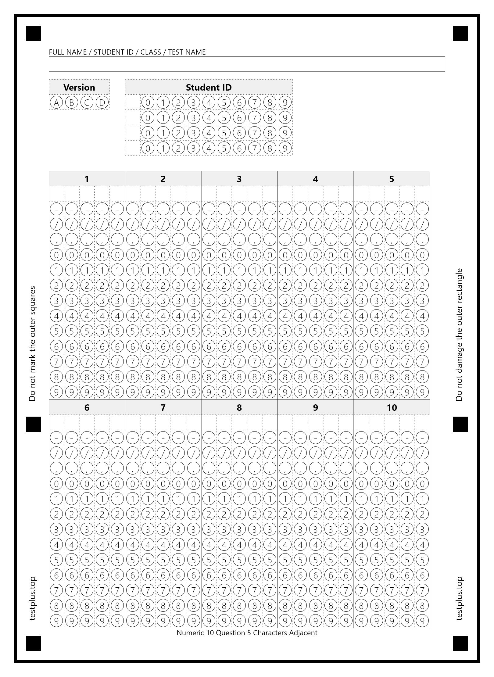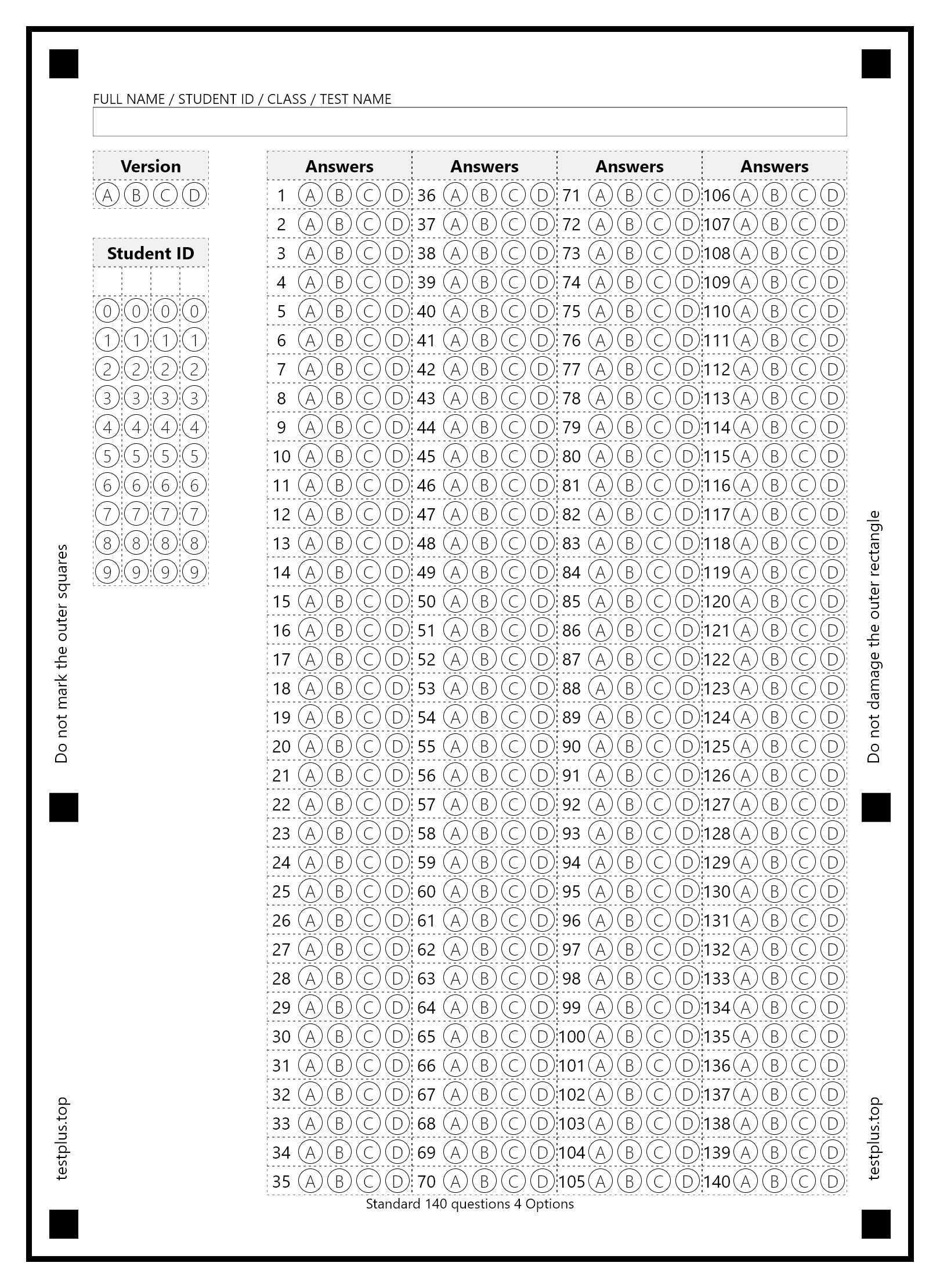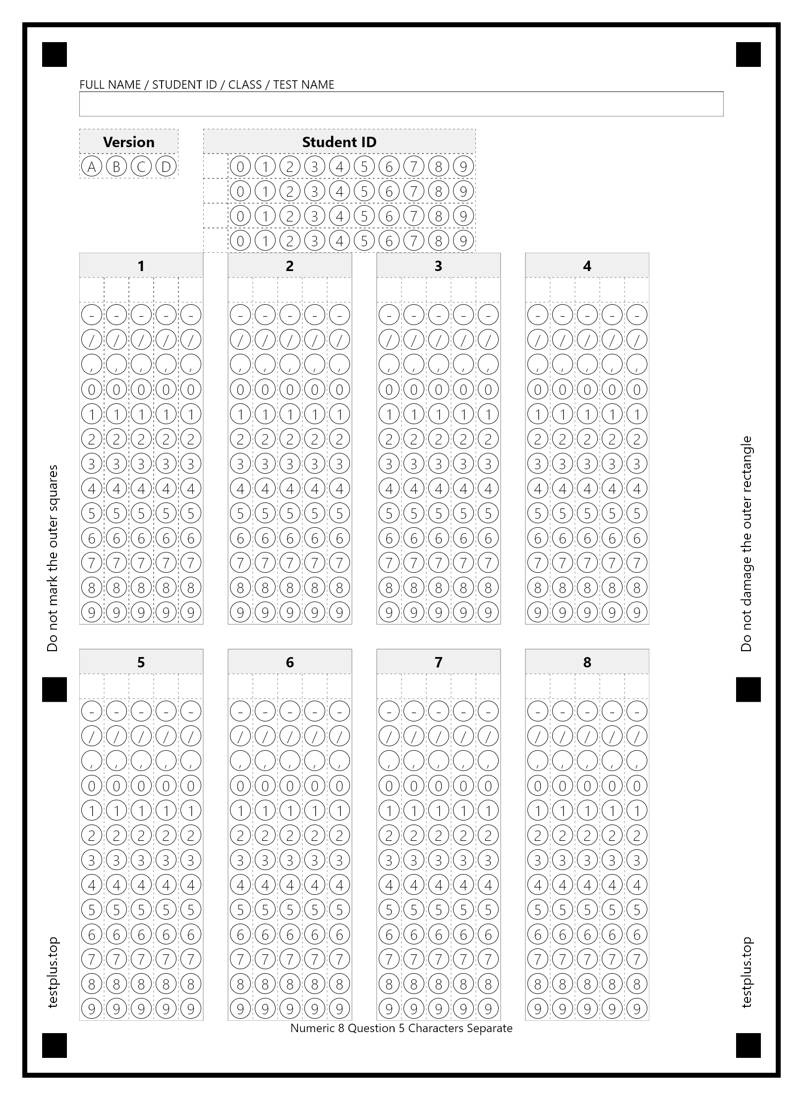 5-option answer sheets