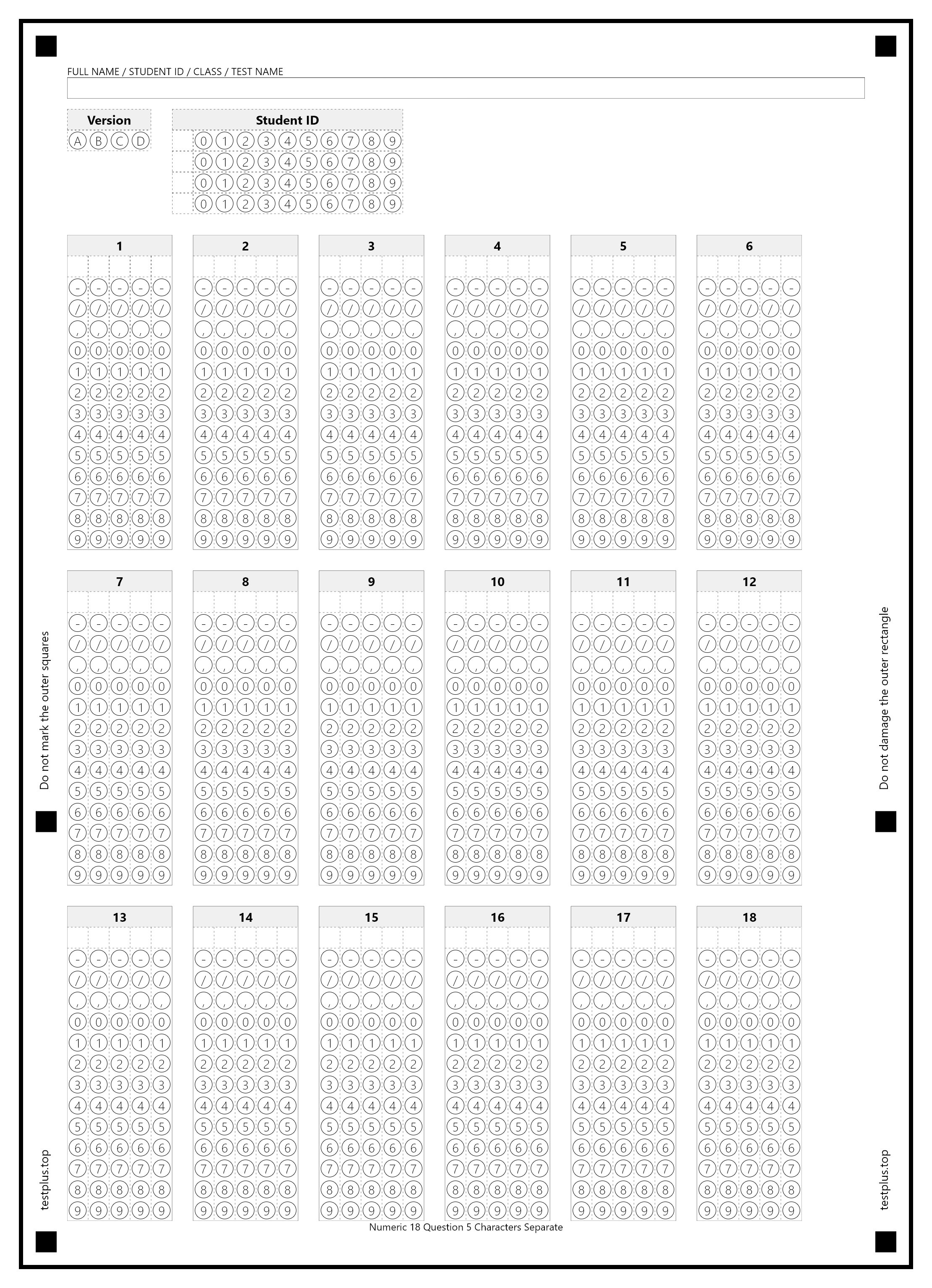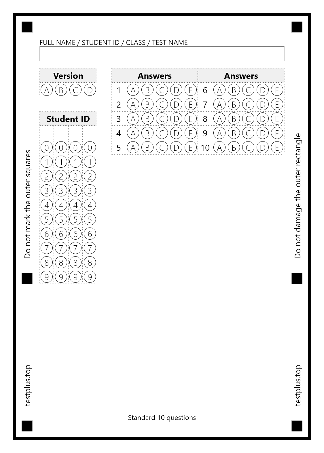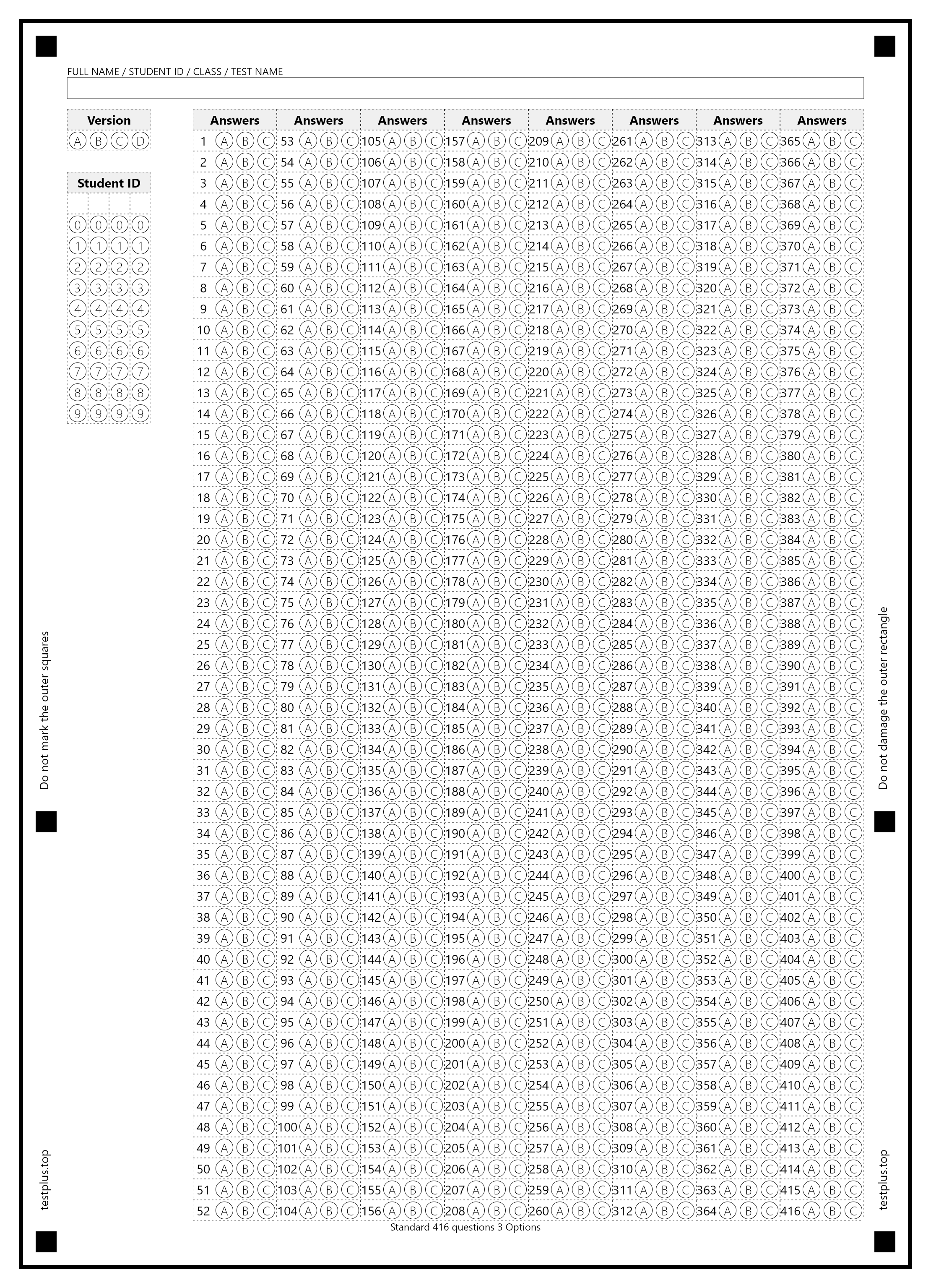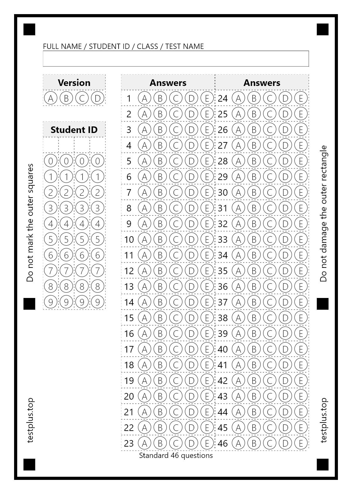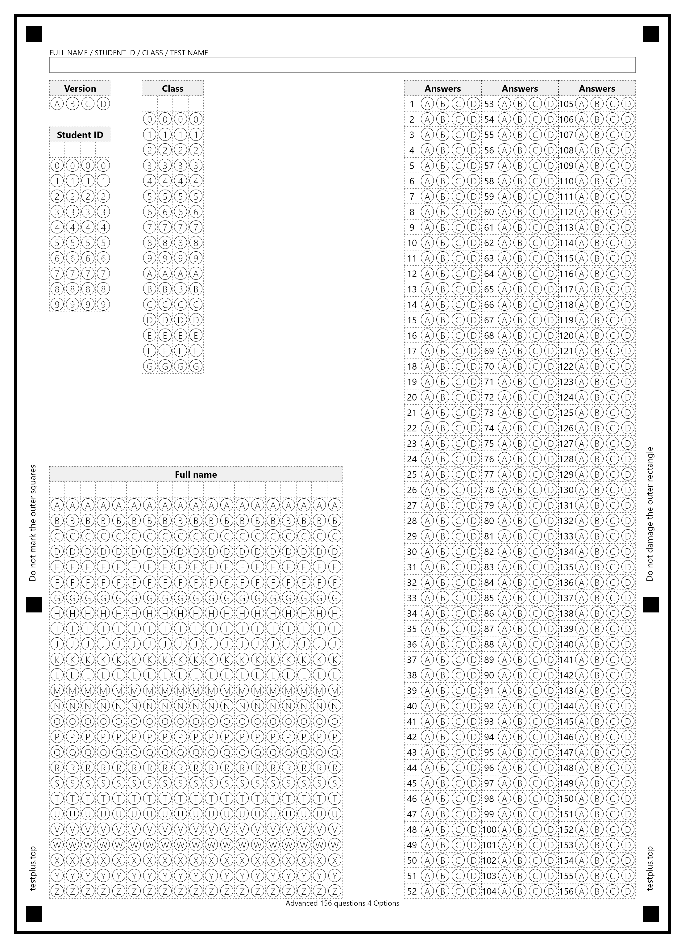 5-option answer sheets