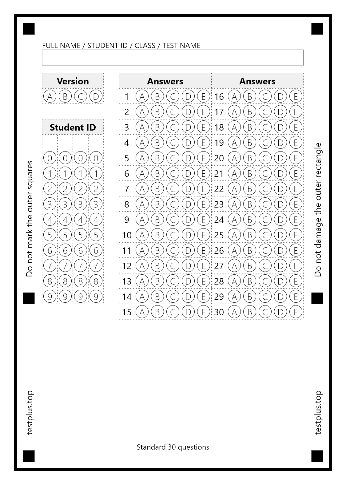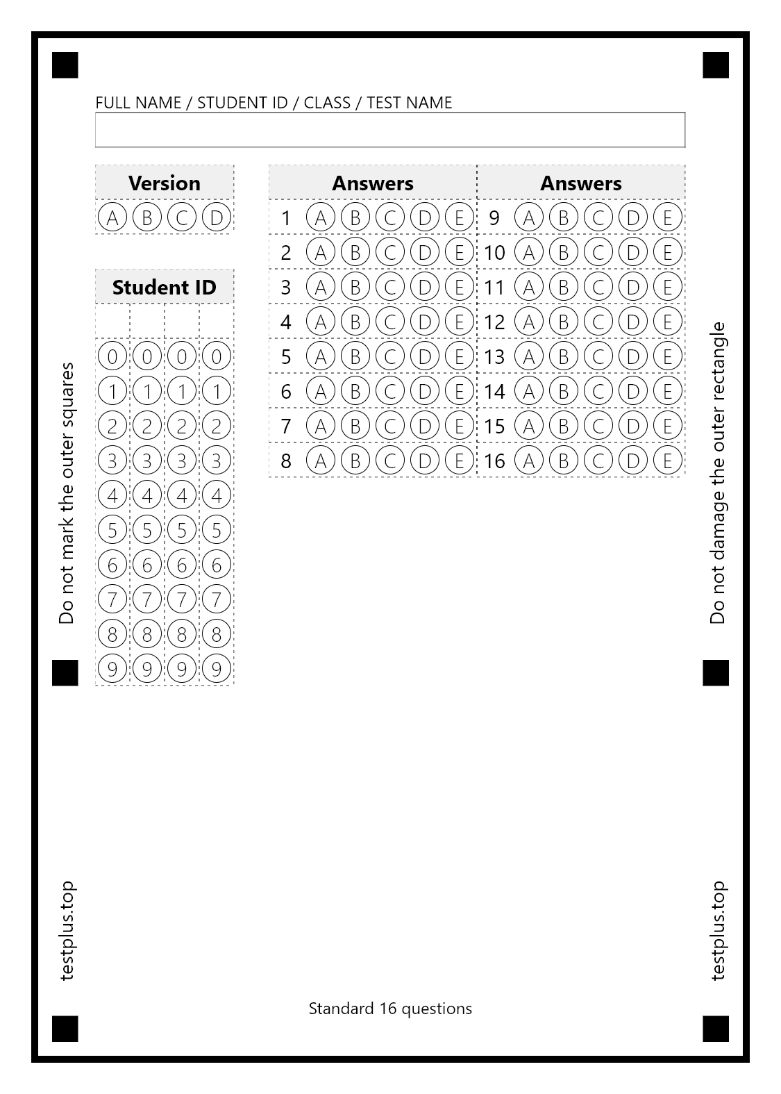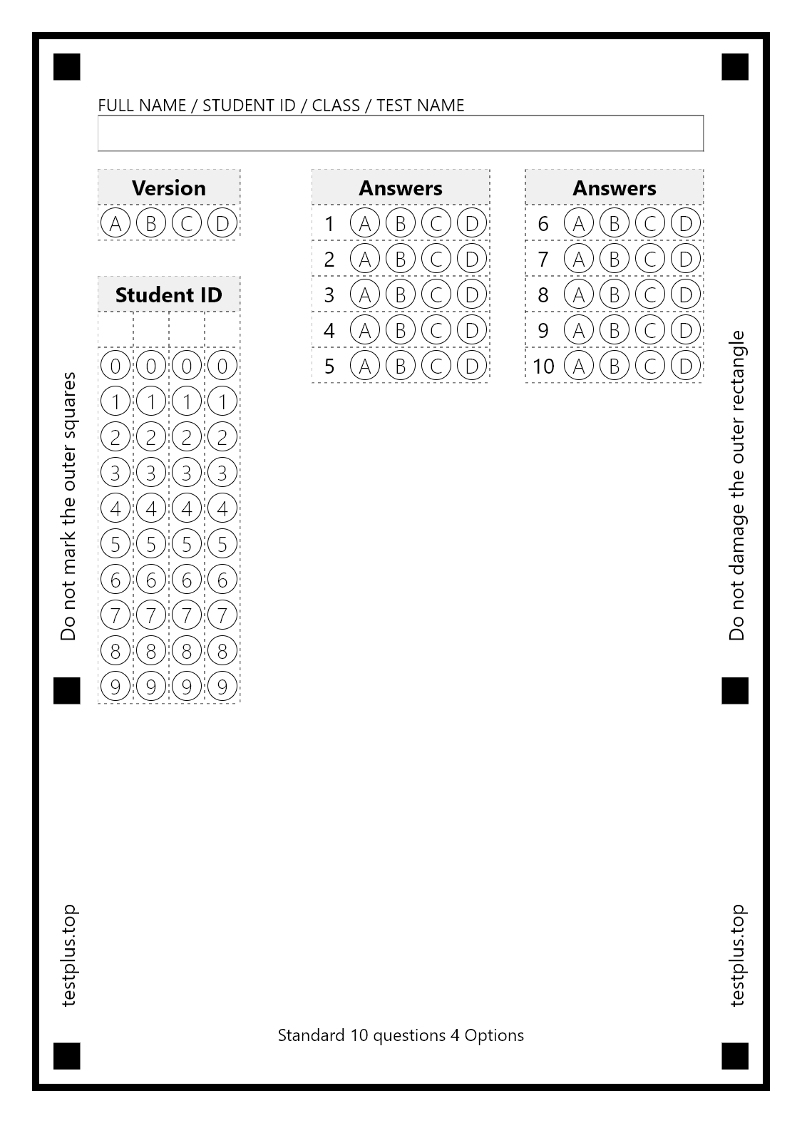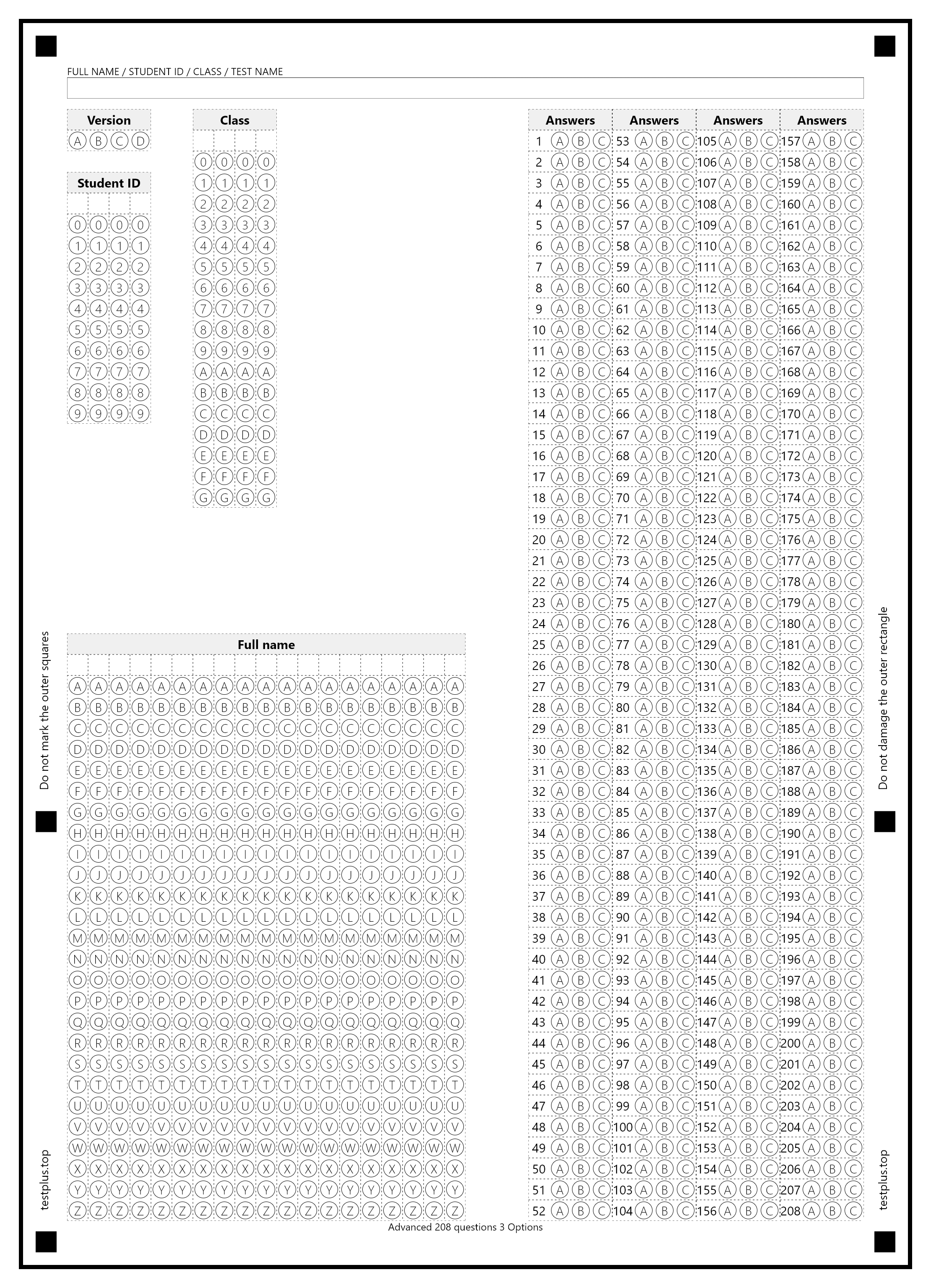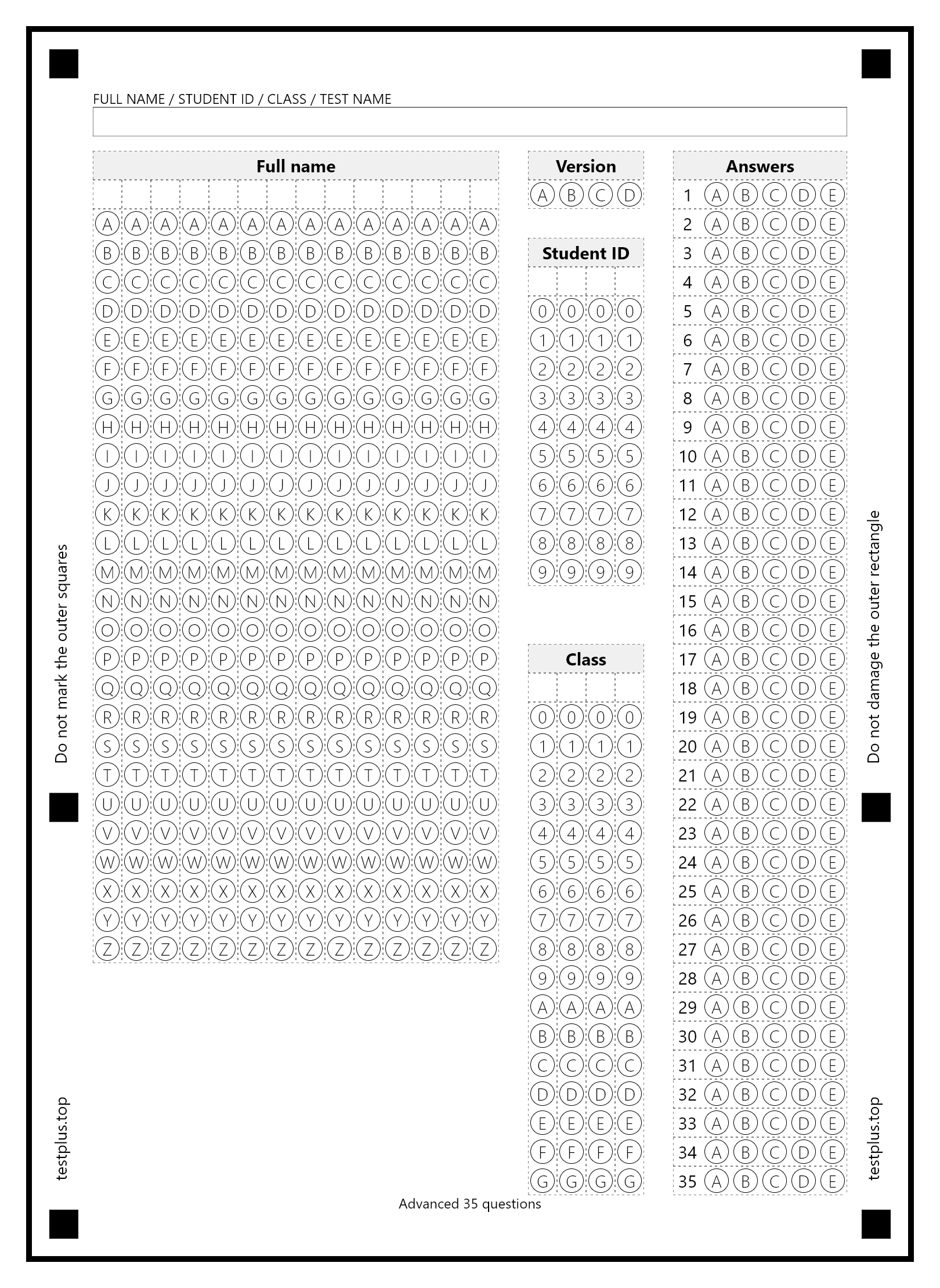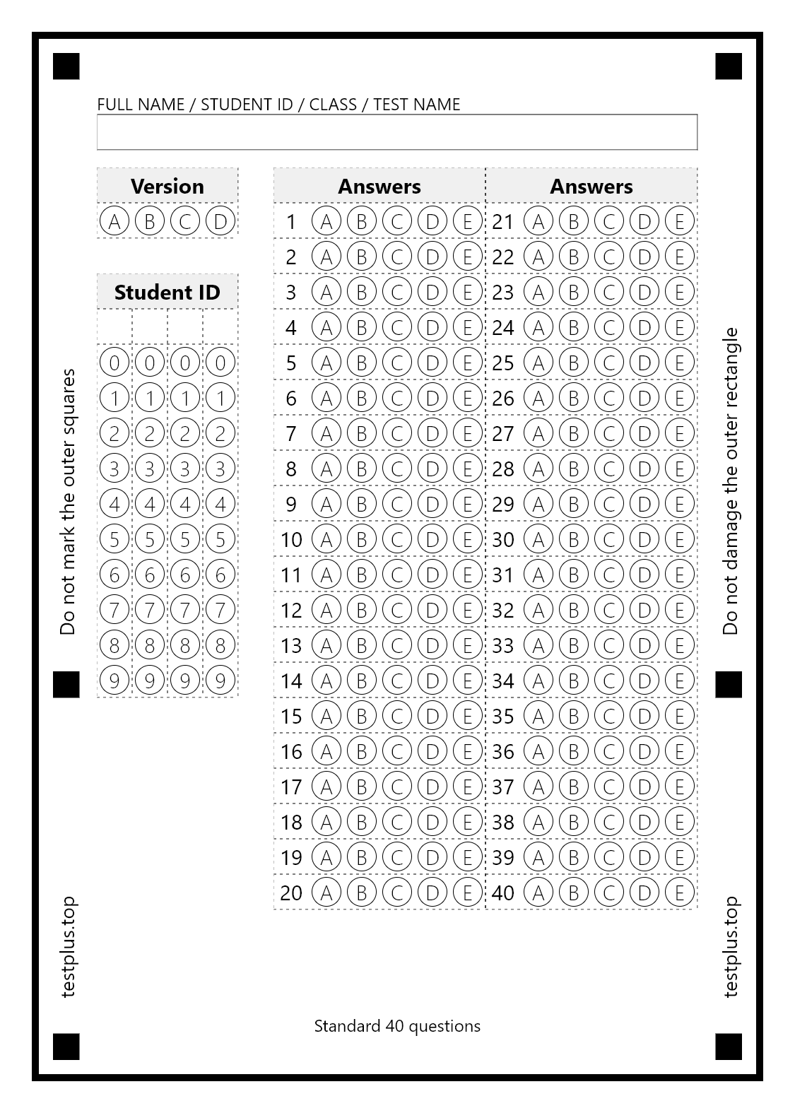 5-option answer sheets