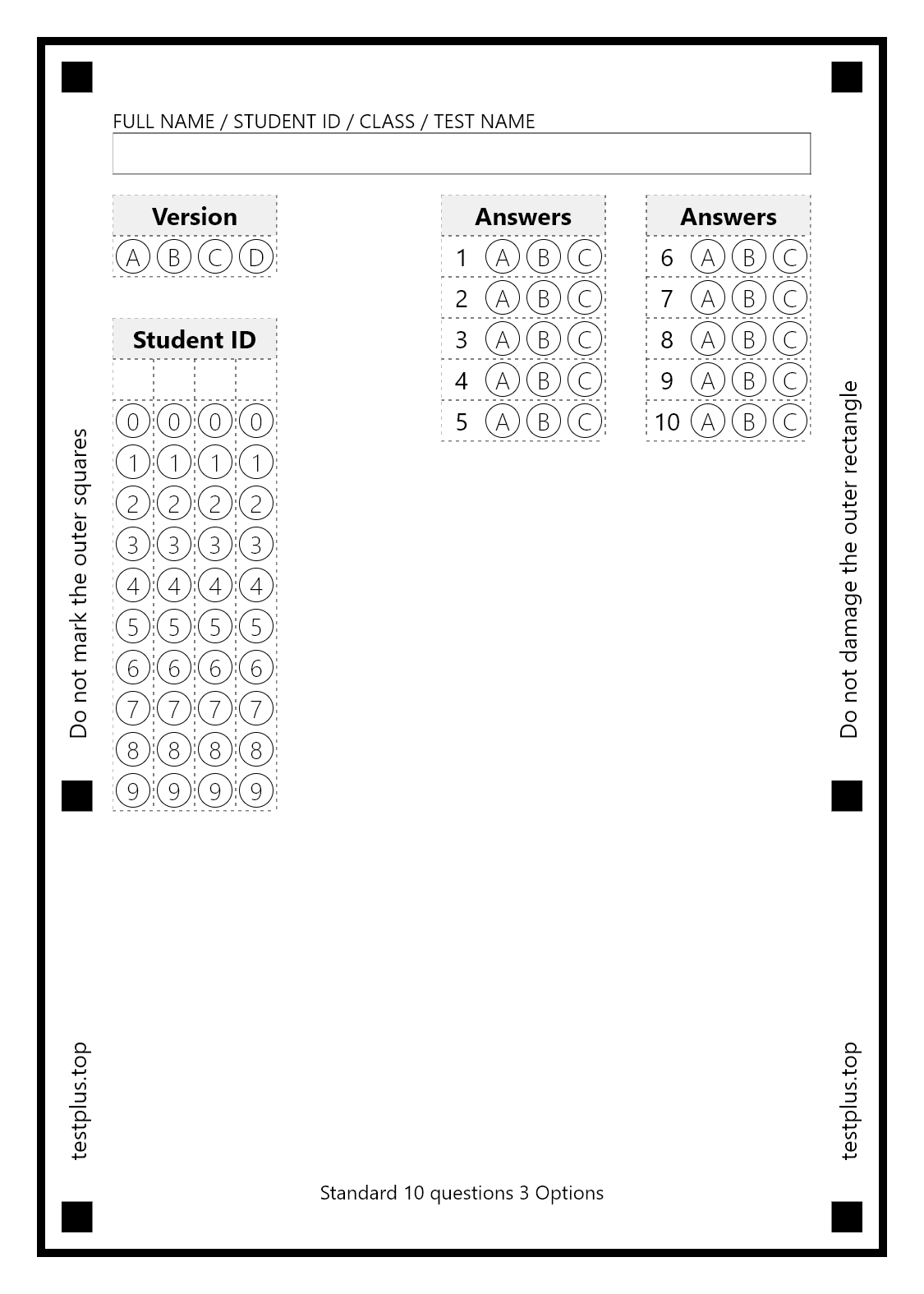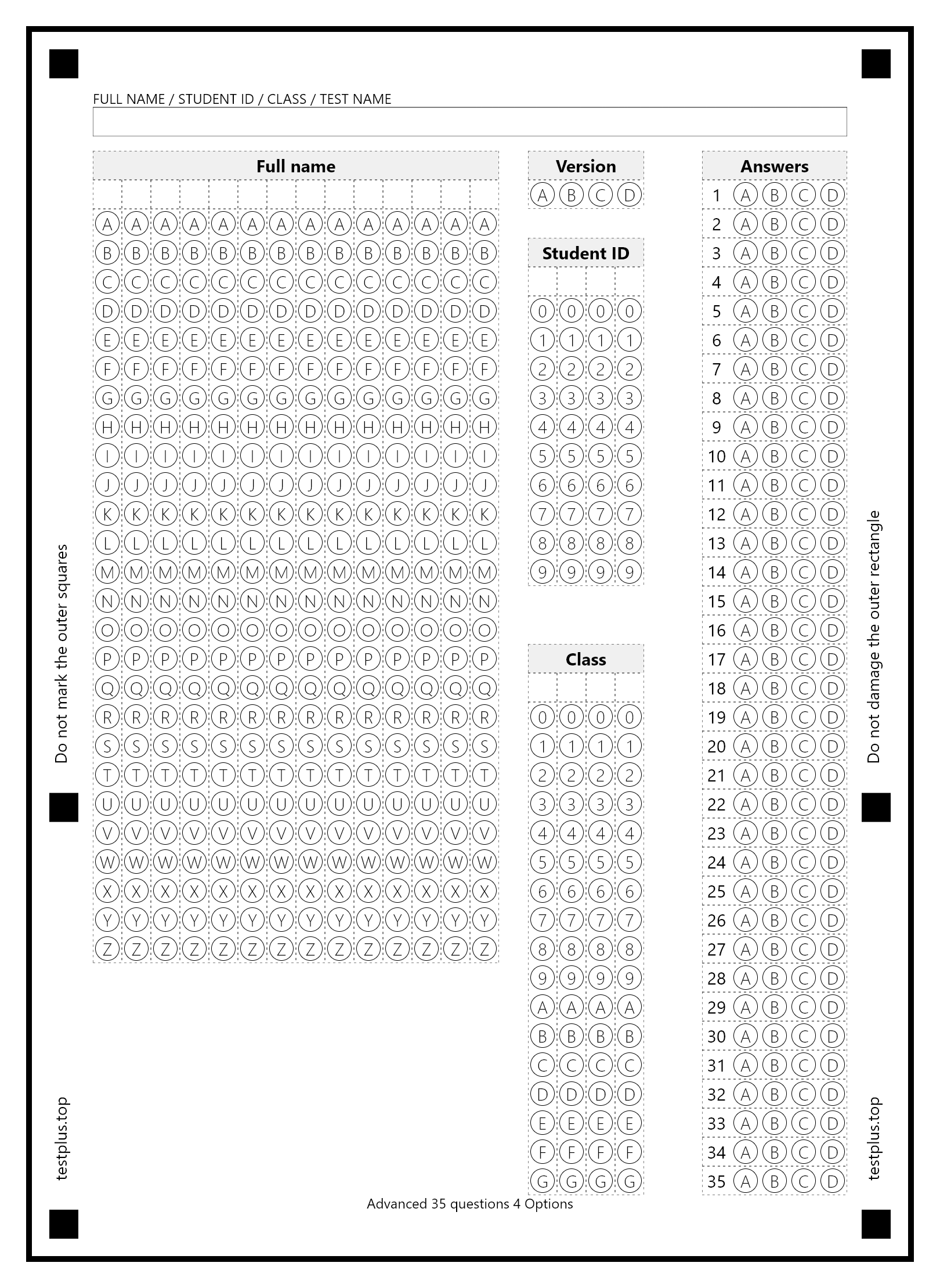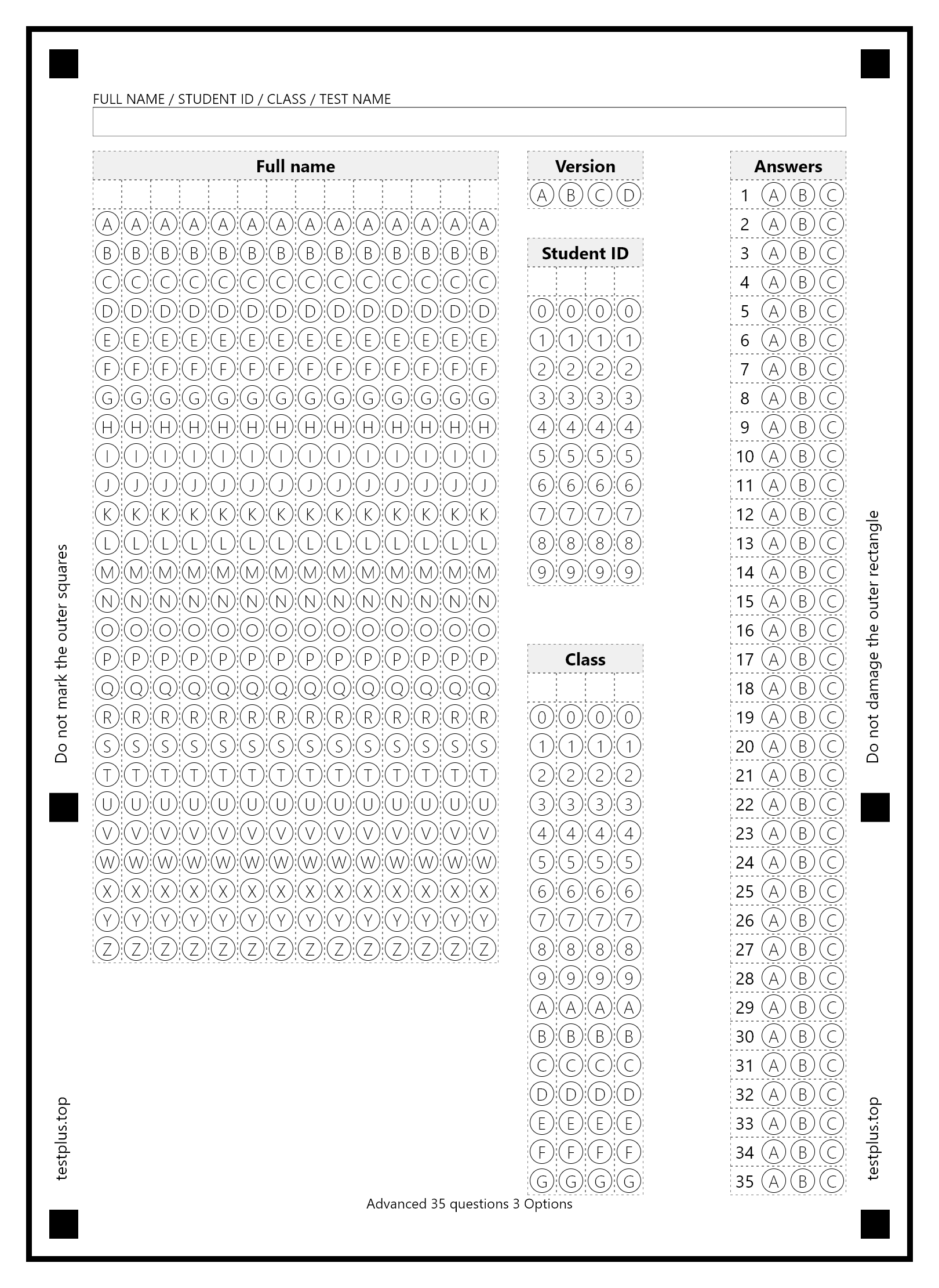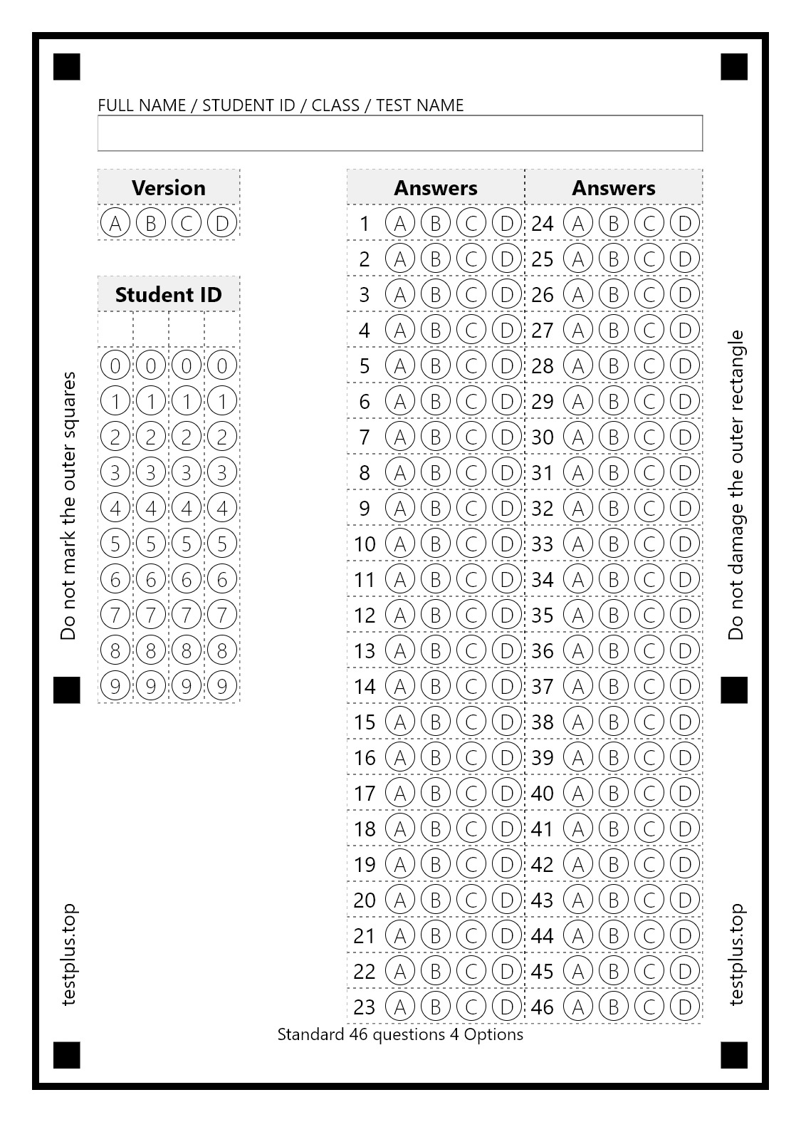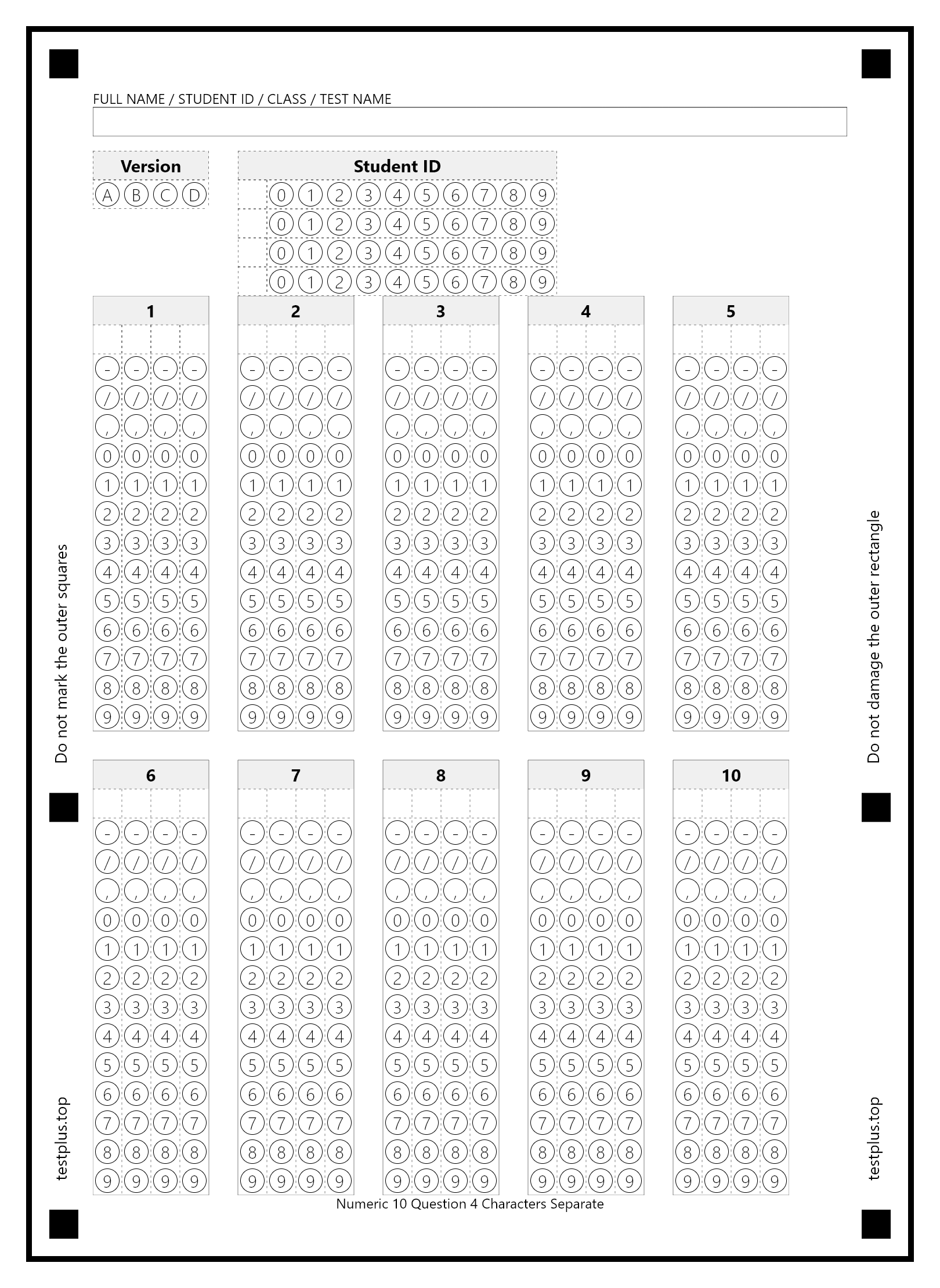 5-option answer sheets