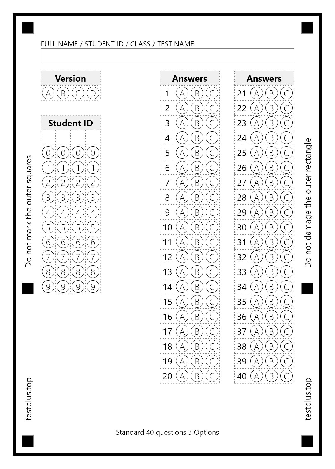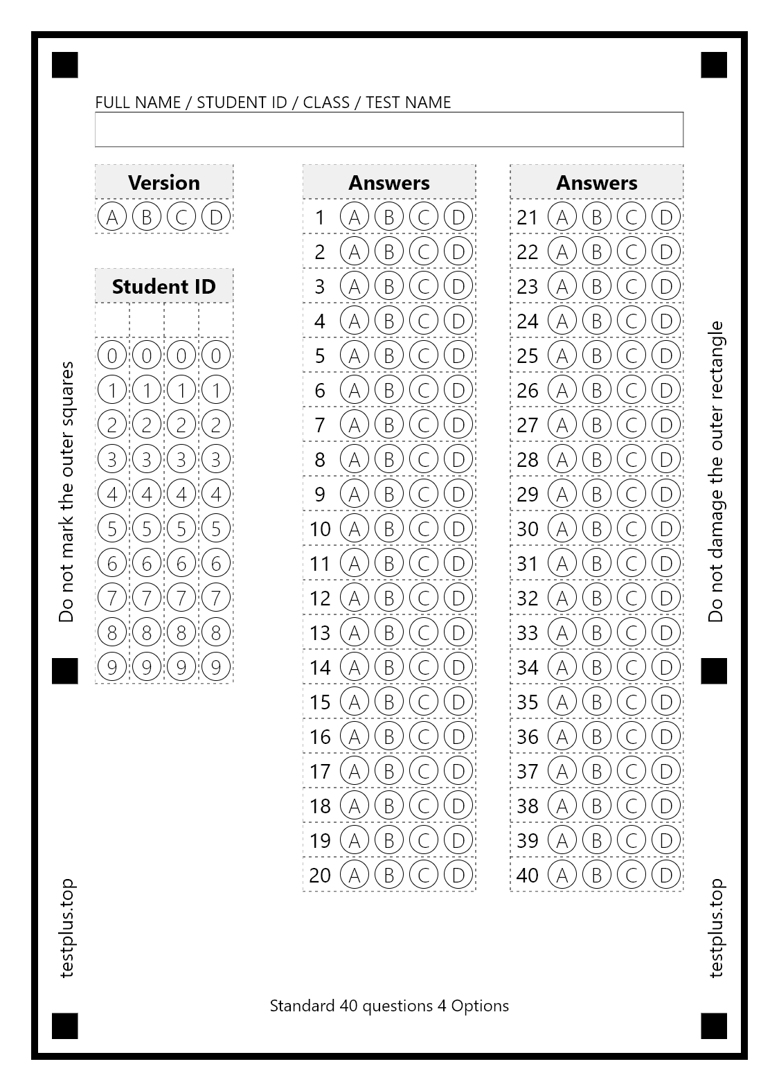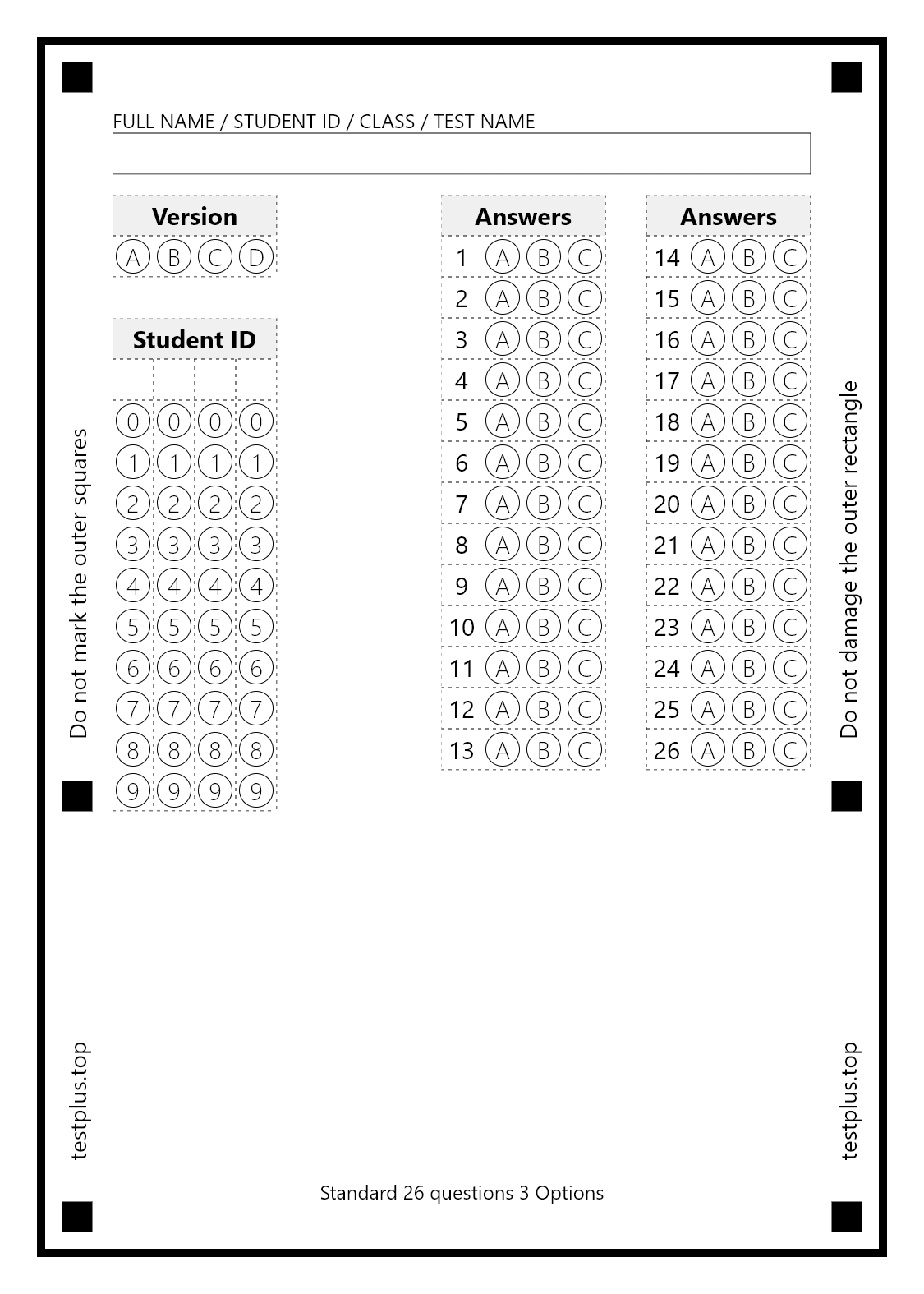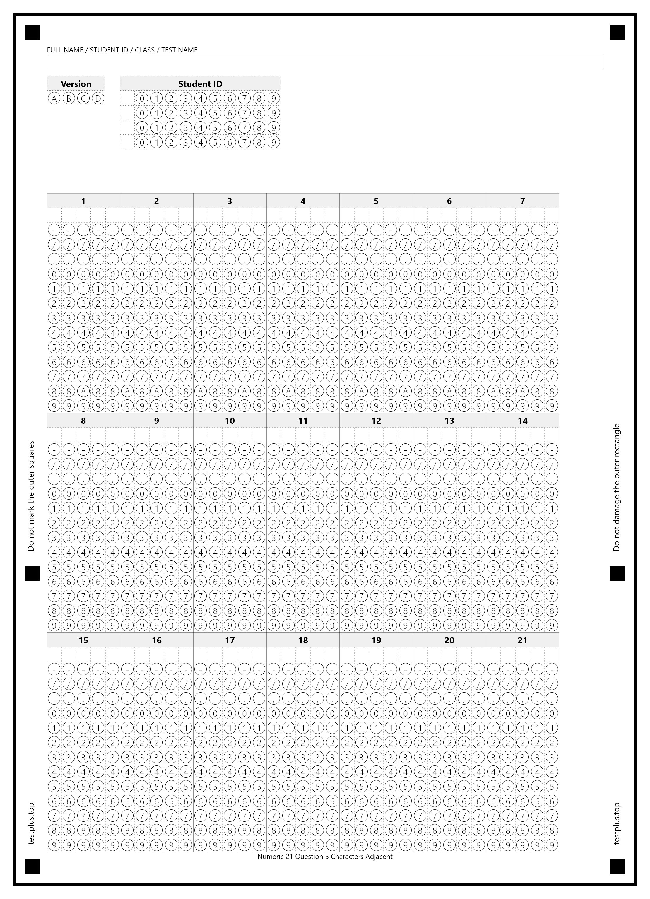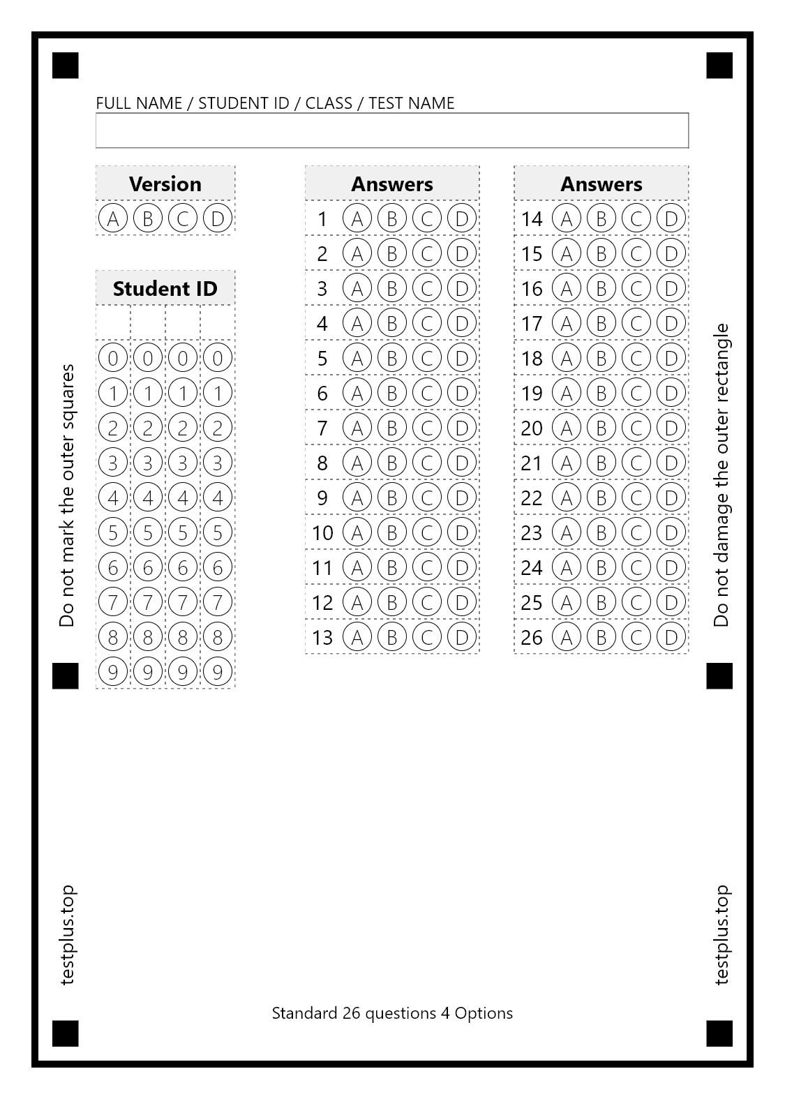 5-option answer sheets