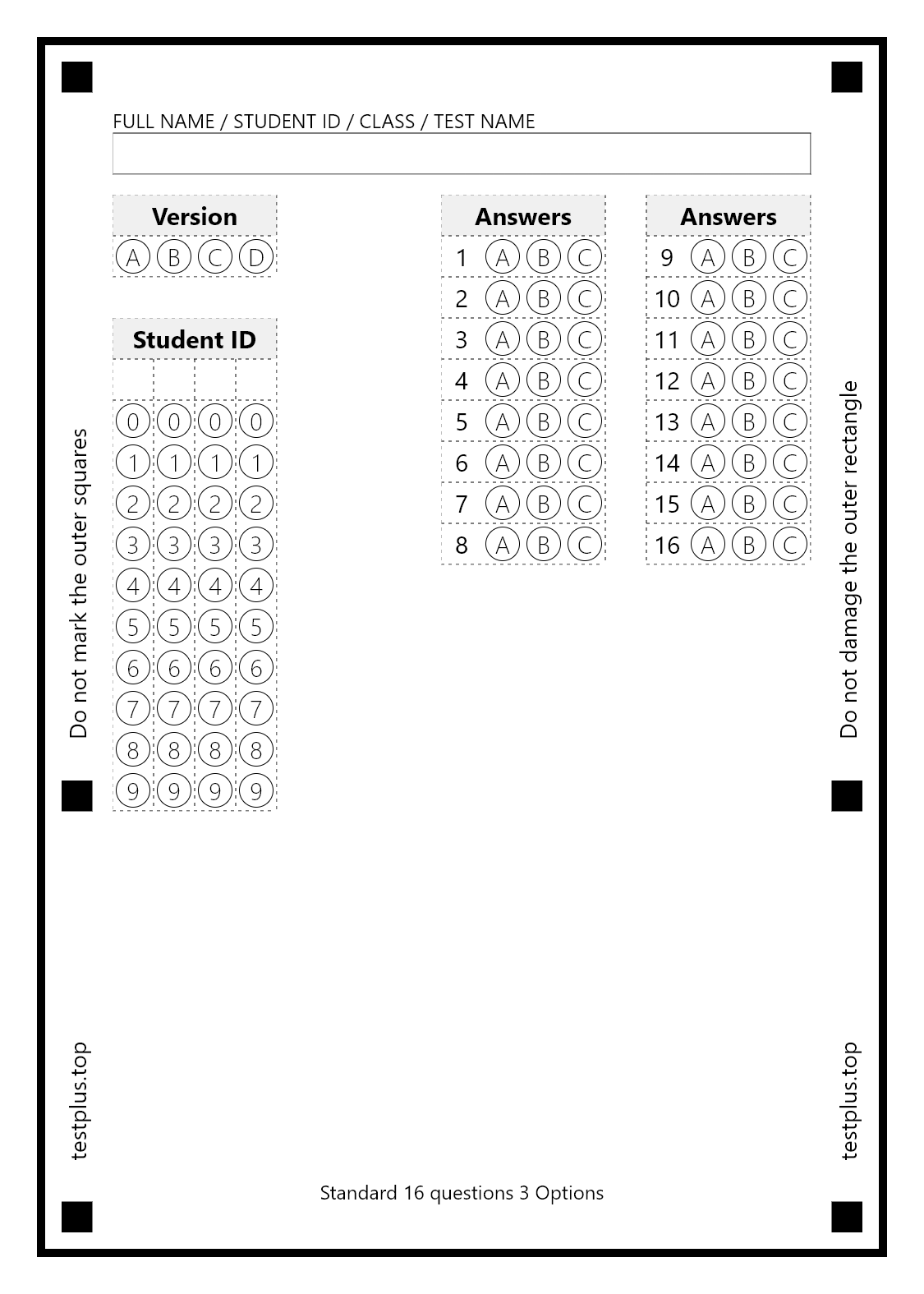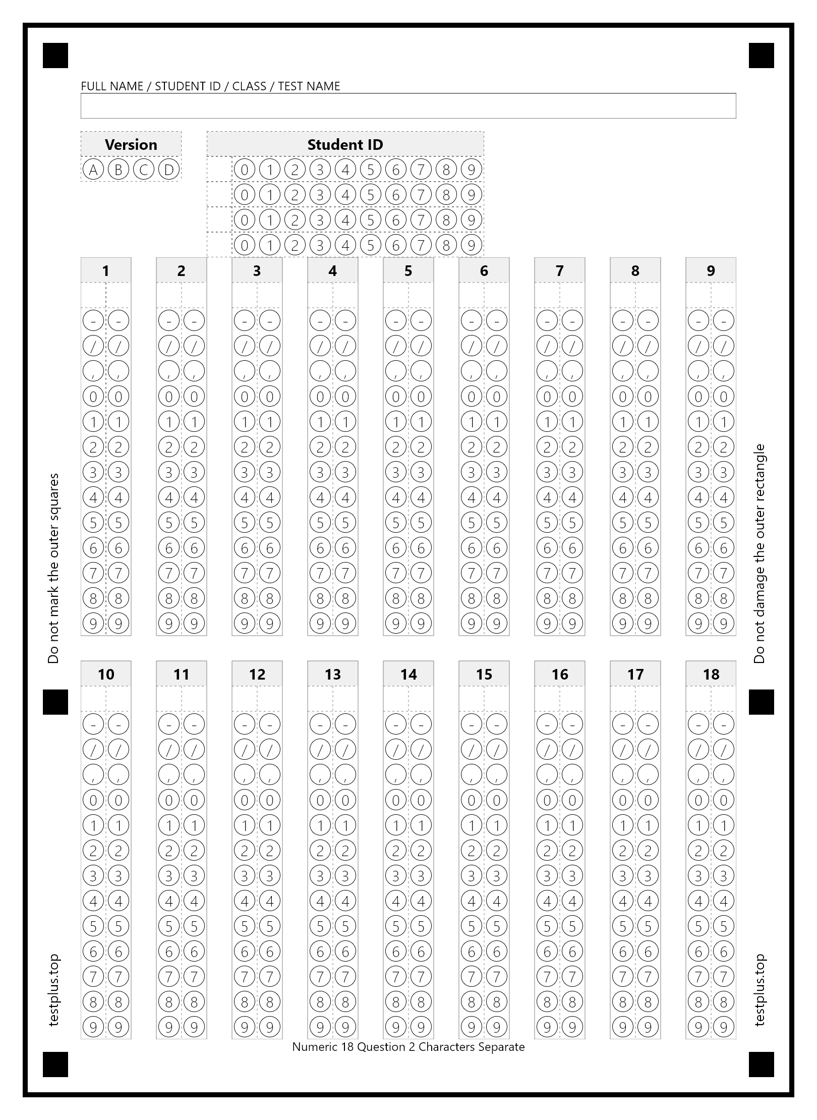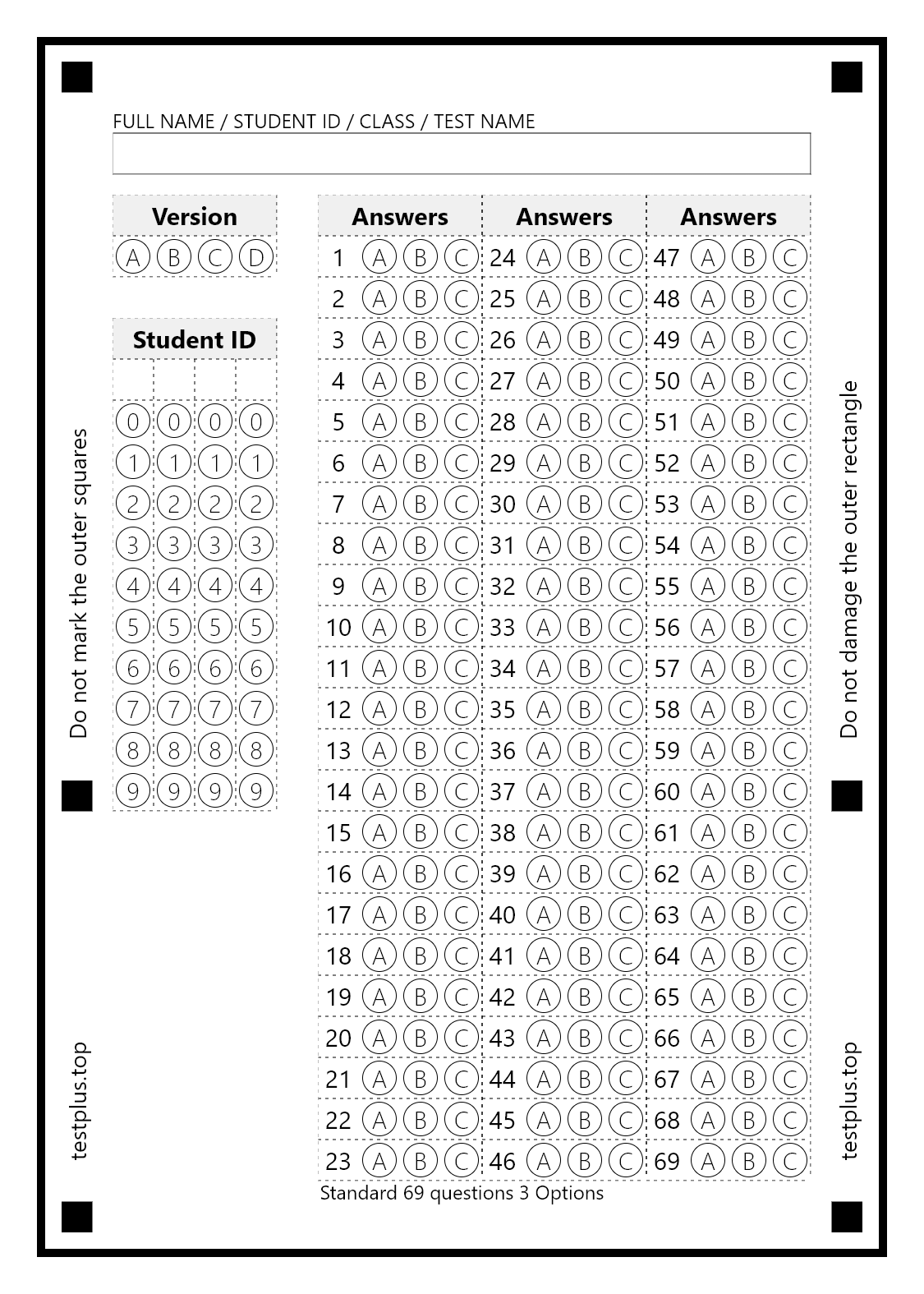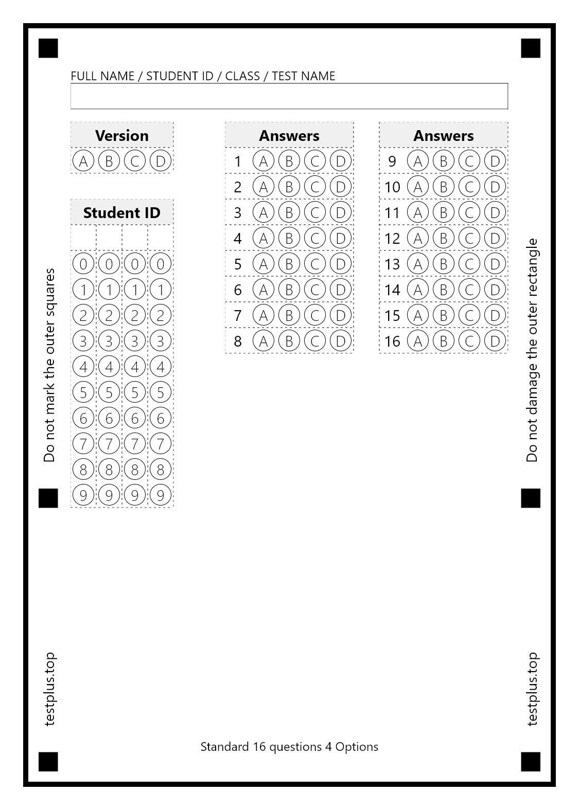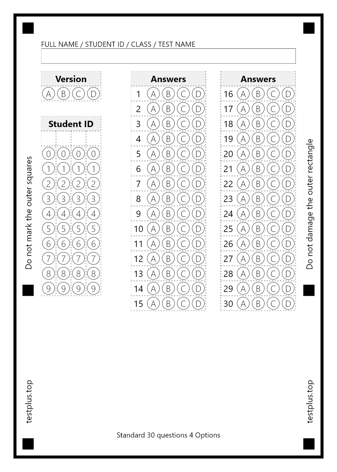 5-option answer sheets