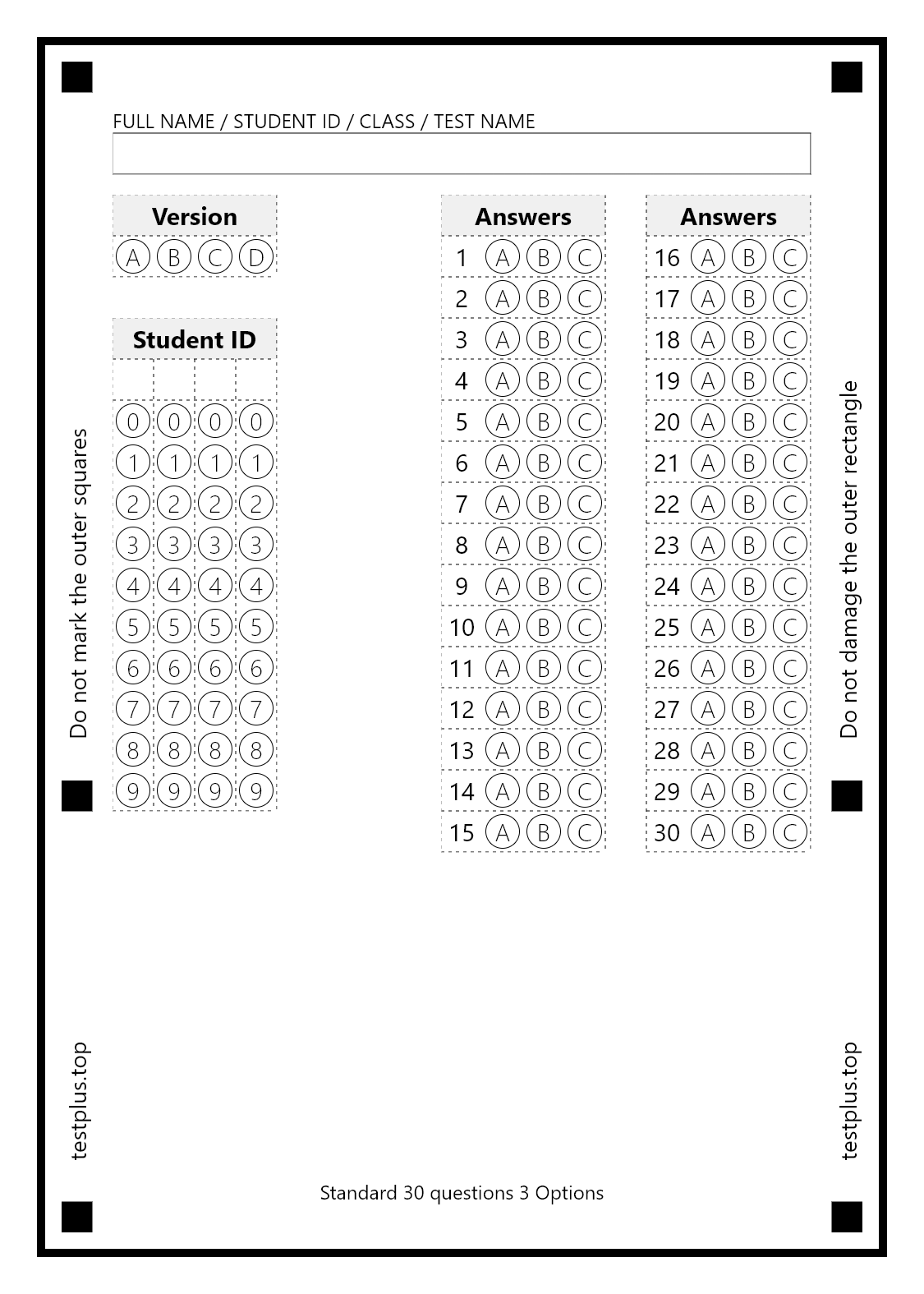 When printing the optical form, if the outer borders are not printing, enable the 'fit to page' setting and print. When cutting the forms, do not damage the outer border or the boxes. If any border or box is damaged, the form cannot be read.