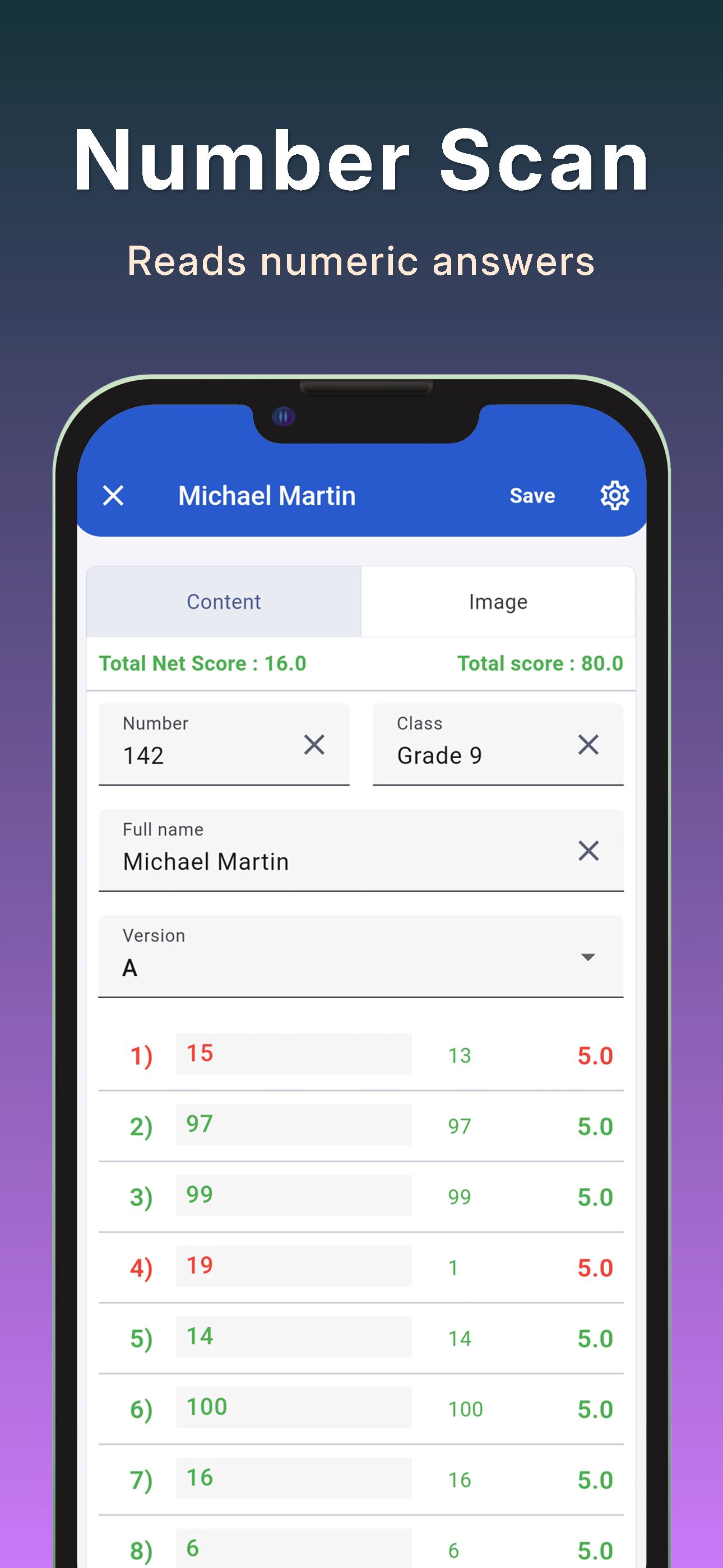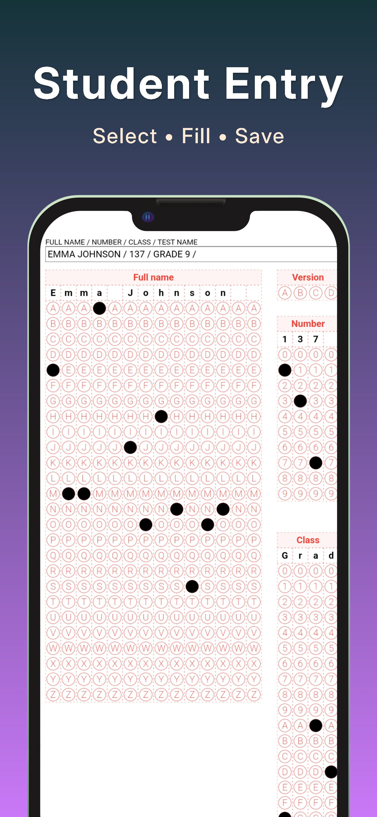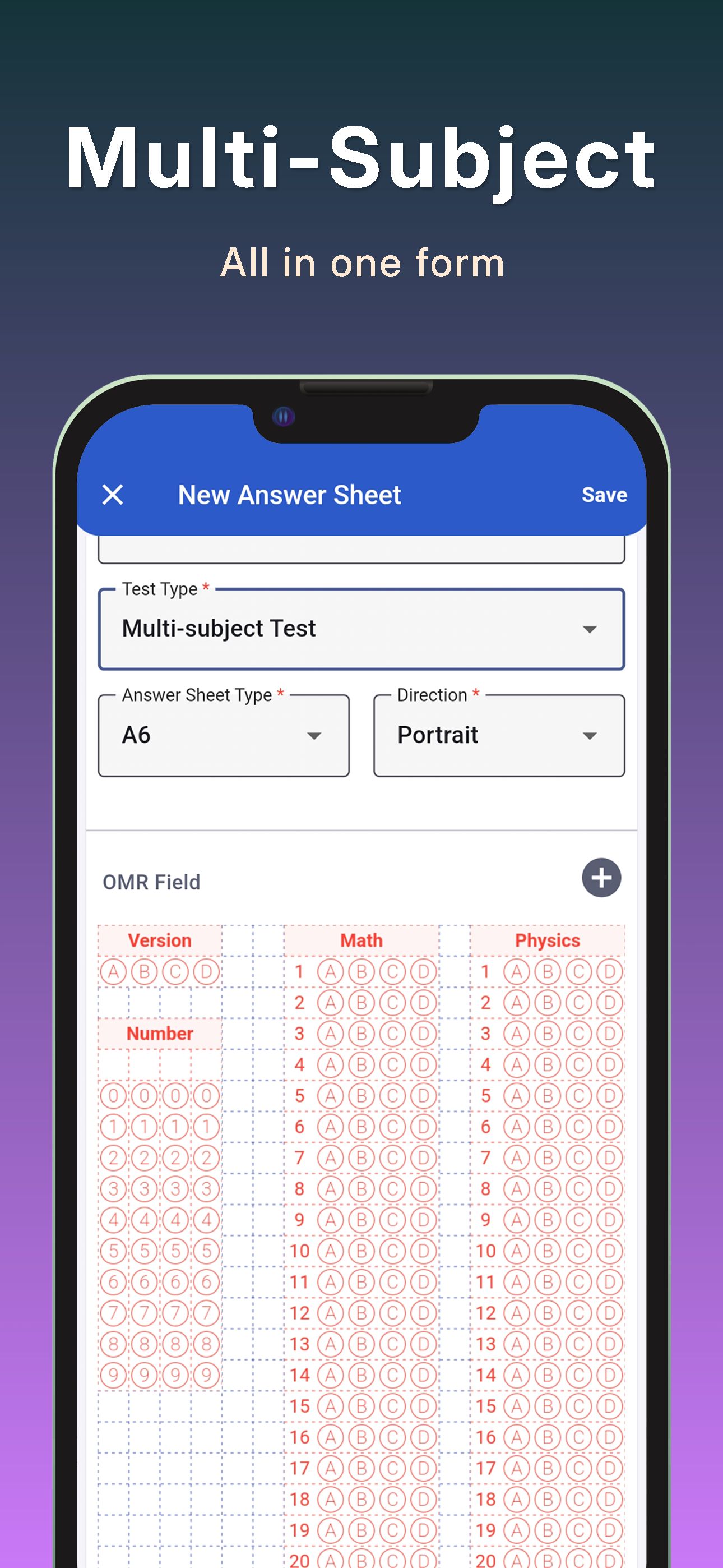 Except in extreme cases, the app reads with 100% accuracy. Once you start feeding forms, you won’t be able to keep up with how fast it reads. Reading is measured in milliseconds, not seconds. You can read the optical form under any light, day or night, with no special settings. It can detect double-marked answers and has no trouble with answers that were marked and then erased. It has a high accuracy rate and can read wrinkled optical forms. The orientation of the form doesn’t matter — it can read upside-down or sideways instantly. It can also read from photos. If you have a large number of papers, you can scan them with a scanner, transfer them to your phone, and then read them.